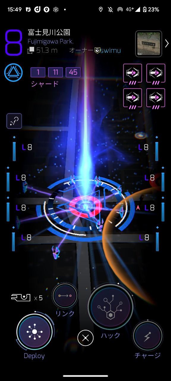 Ingressを簡単に説明すると、青陣営(Resistance)と緑陣営(Enlightened)に分かれて、実際に外に出て移動し、陣地を奪い合う陣取りゲームです。ちなみに私はResistance(青陣営)です。